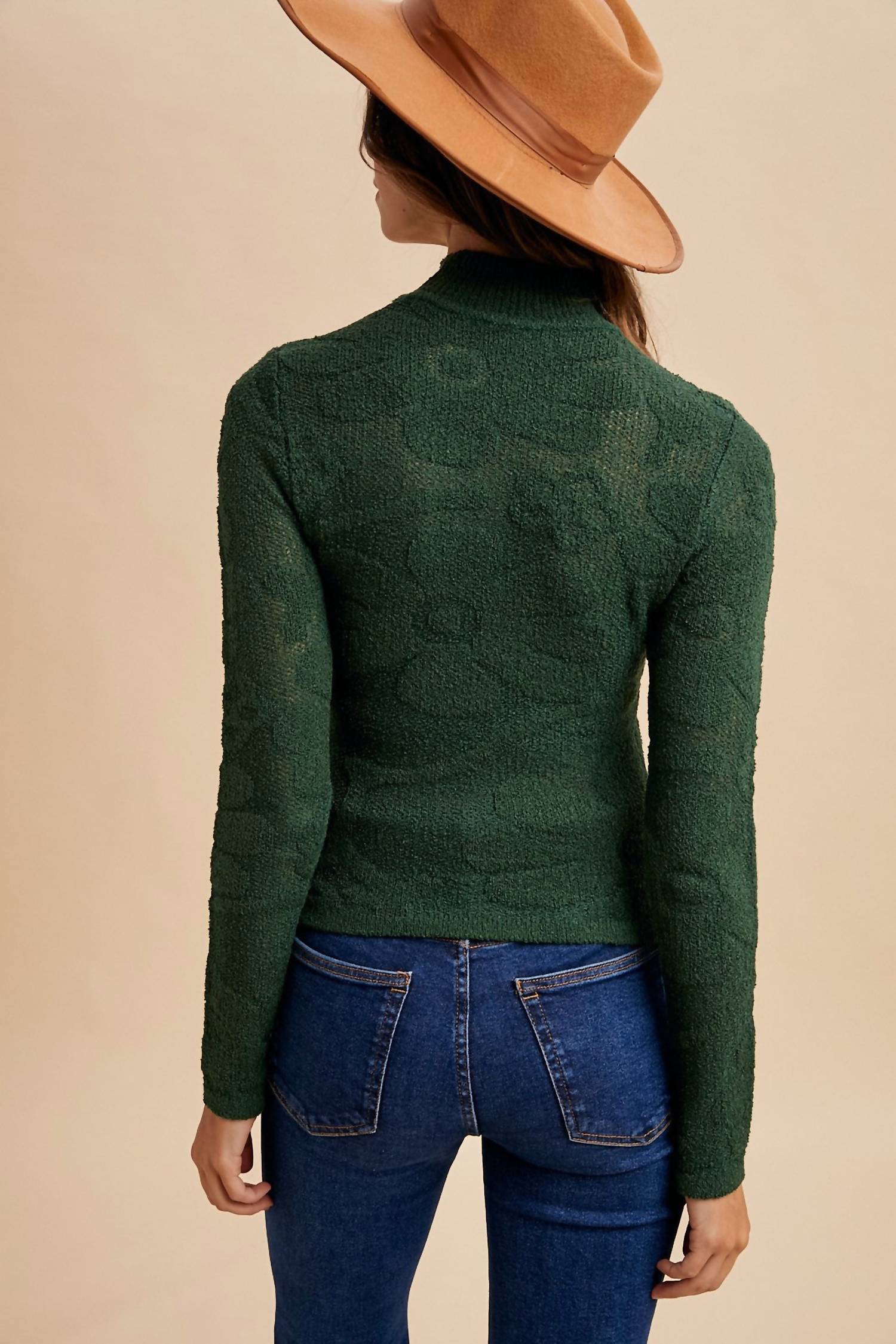 Anniewear - Floral Jacquard Mock Neck Sweater Top