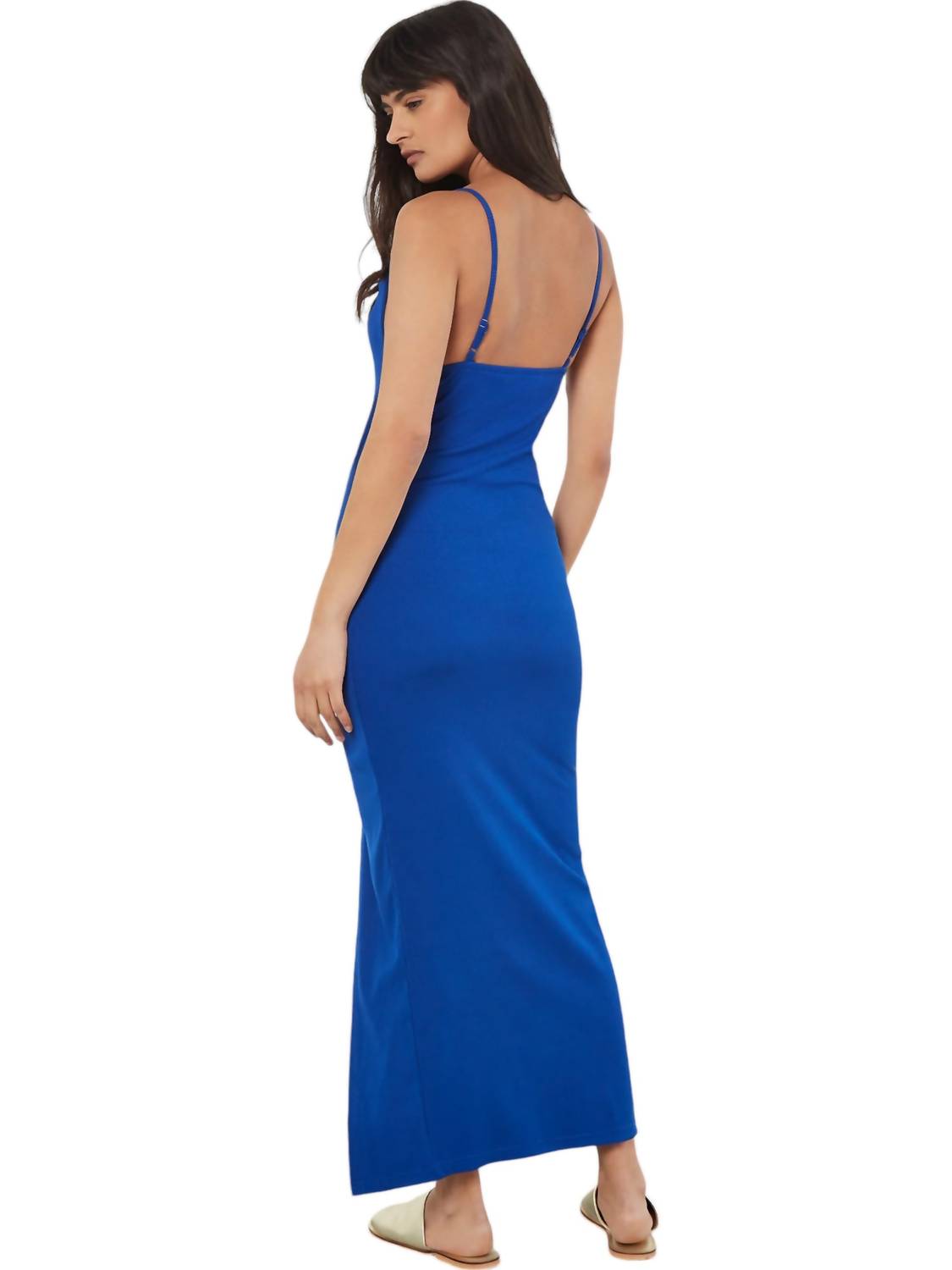 A midi dress so versatile, your options for wearing it are endless.Crafted from a luxurious blend of 93% Polyester and 7% Elastane. Promises to hug your curves. Offering unparalleled comfort and stretch. Eye-catching ribbed texture. Designed with a stylish cowlneck and delicate spaghetti straps. Bodycon silhouette accentuates your figure. Side ruching detail flatters your shape even further. Timeless blue hue. Pull-on midi dress is both versatile and elegant.