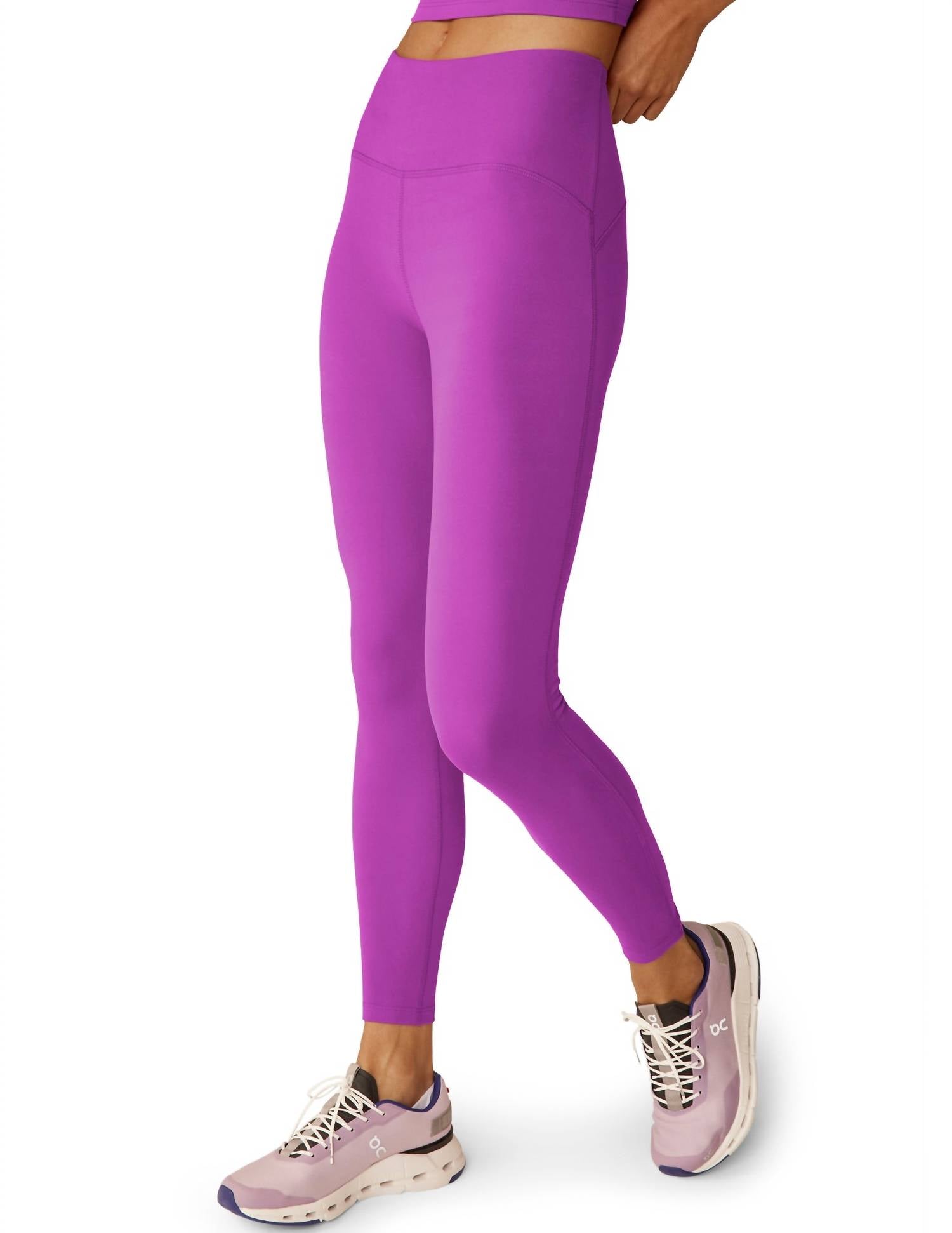 The legging you didn't know you needed and you won't want to take off. Discover the Powerbeyond Strive High Waisted Midi Legging by BEYOND YOGA, expertly crafted in the US for an active lifestyle. These violet berry leggings are made from durable 95% Polyester, 5% Elastane, featuring a high-rise fit with a 6.75" rise and a flattering 4” contoured waistband. Designed with a skinny leg, they offer a pull-on closure and a slim fit, falling perfectly between calf and ankle with a 24" inseam. Easy to care for, simply machine wash to maintain their sculpting form.