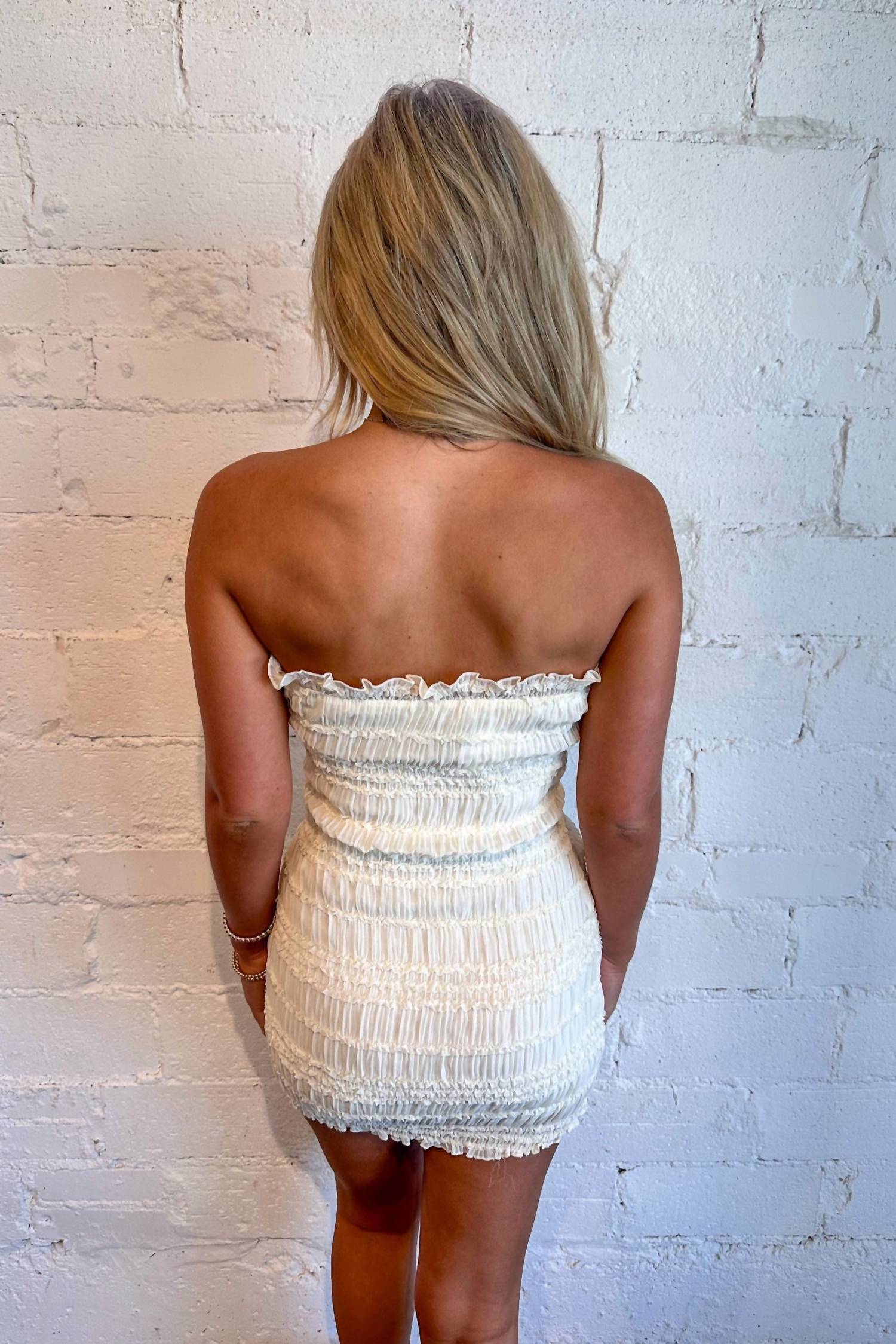 The kind of easy and flattering dress you'll be reaching for all season long. Meet the Amalfi Dress by Cotton Candy LA, an embodiment of relaxed elegance perfect for any spontaneous getaway or beach day. Crafted from soft, breathable 100% Polyester, this strapless mini dress boasts a textured bodycon silhouette with a sweetheart neckline. It's made for sun-soaked days and captures the essence of 90s fashion. Care instructions recommend a hand wash separately in cold water, line dry, and cool iron if necessary. Model's Measurements: Height 5'6", Bust 33", Waist 25", Hips 34" (Wearing Size: Small).