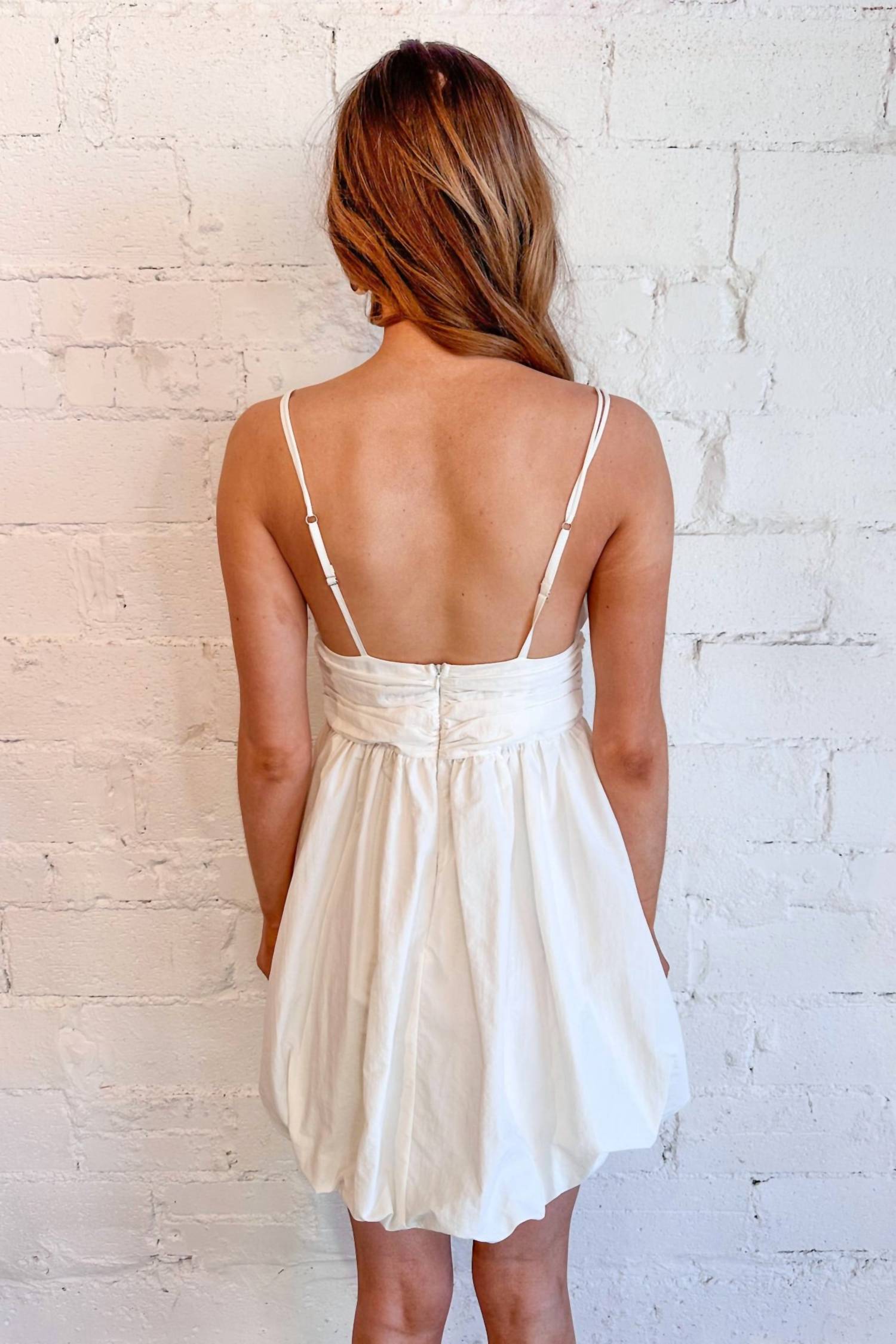 The kind of easy and flattering dress you'll be reaching for all season long. Introducing the Camille Babydoll Poplin Mini Dress by Day + Moon, a chic addition to any warm-weather wardrobe in classic solid white. Designed with spaghetti straps and a flattering A-line silhouette, this dress features a feminine V-neckline. Composition: 100% Nylon. Closure: Zip closure. Care: Hand wash cold, do not tumble dry, hang dry to maintain its breezy charm. Perfect for spring vacations, this minimalist design offers a versatile style for any occasion.