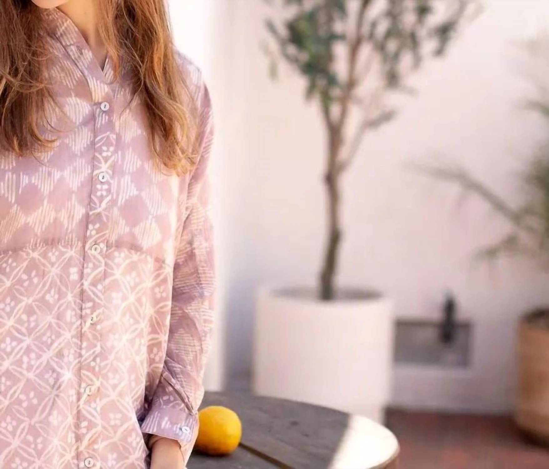 A classic button down shirt that will never go out of style. Experience contrasting geometric patterns with the Blair Button Down Shirt by Dolma, perfect for a touch of boho chic style. Crafted from 100% cotton, this shirt features long roll-up sleeves and a mandarin collar, delivering comfort with a sophisticated edge. Closure is secured with buttons, making it ideal for versatile looks, whether tucked in with jeans or paired with linen pants. Care for this garment is a breeze with gentle machine washing and laying it flat to dry.