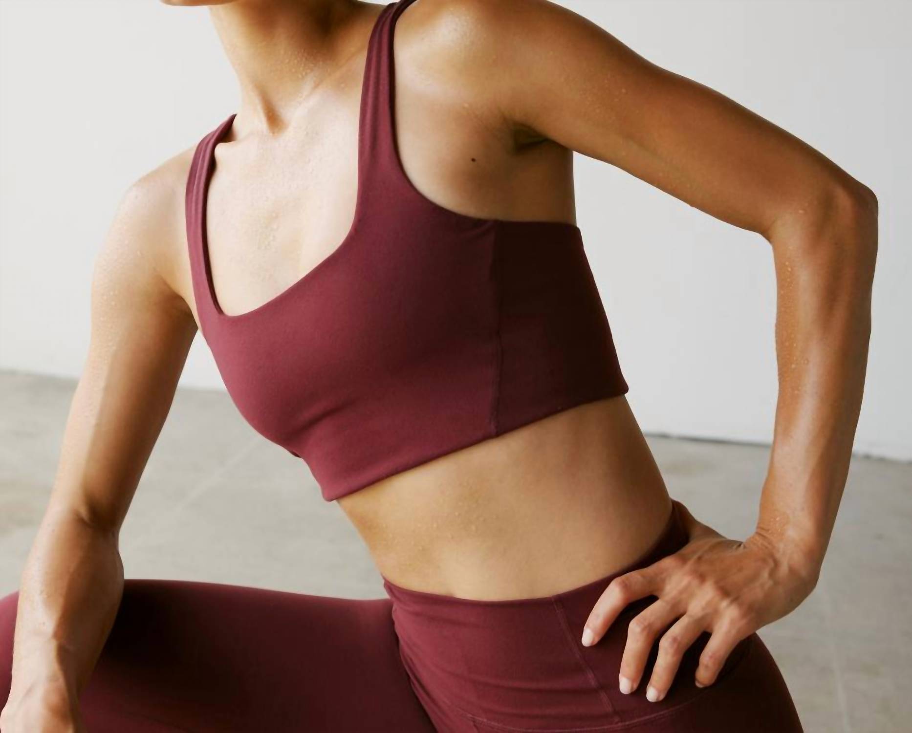 So comfortable you can sleep in it, lounge in it, or work out in it. Introducing the Never Better Square Neck Sports Bra by Free People in a striking Oxblood hue, perfect for your next yoga class or studio workout. This bra features a sleek square neckline and a V-shaped back, with a supportive underband and seam detailing for an ultra-comfortable fit. Made from buttery soft and stretchy material, it offers a breathable design with thin fixed shoulder straps, in a cropped pull-on style. Bust measures 28.5 inches and length is 6.75 inches for size small. Care: Machine wash cold. Country of Origin: Imported.