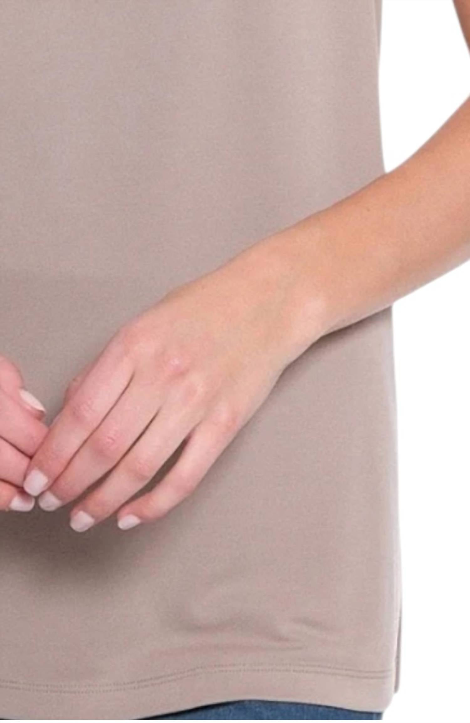 This classic tank top is perfect for layering and cute enough to wear on its own. Meet the Sweater Tank Top by Multiples, a chic taupe piece perfect for warm-weather layering. This sleeveless design features a high round neckline with band details for a refined touch. Carefully crafted from 80% Rayon and 20% Nylon, it promises softness and comfort. Closure: Pull-on. Country of Origin: Imported.