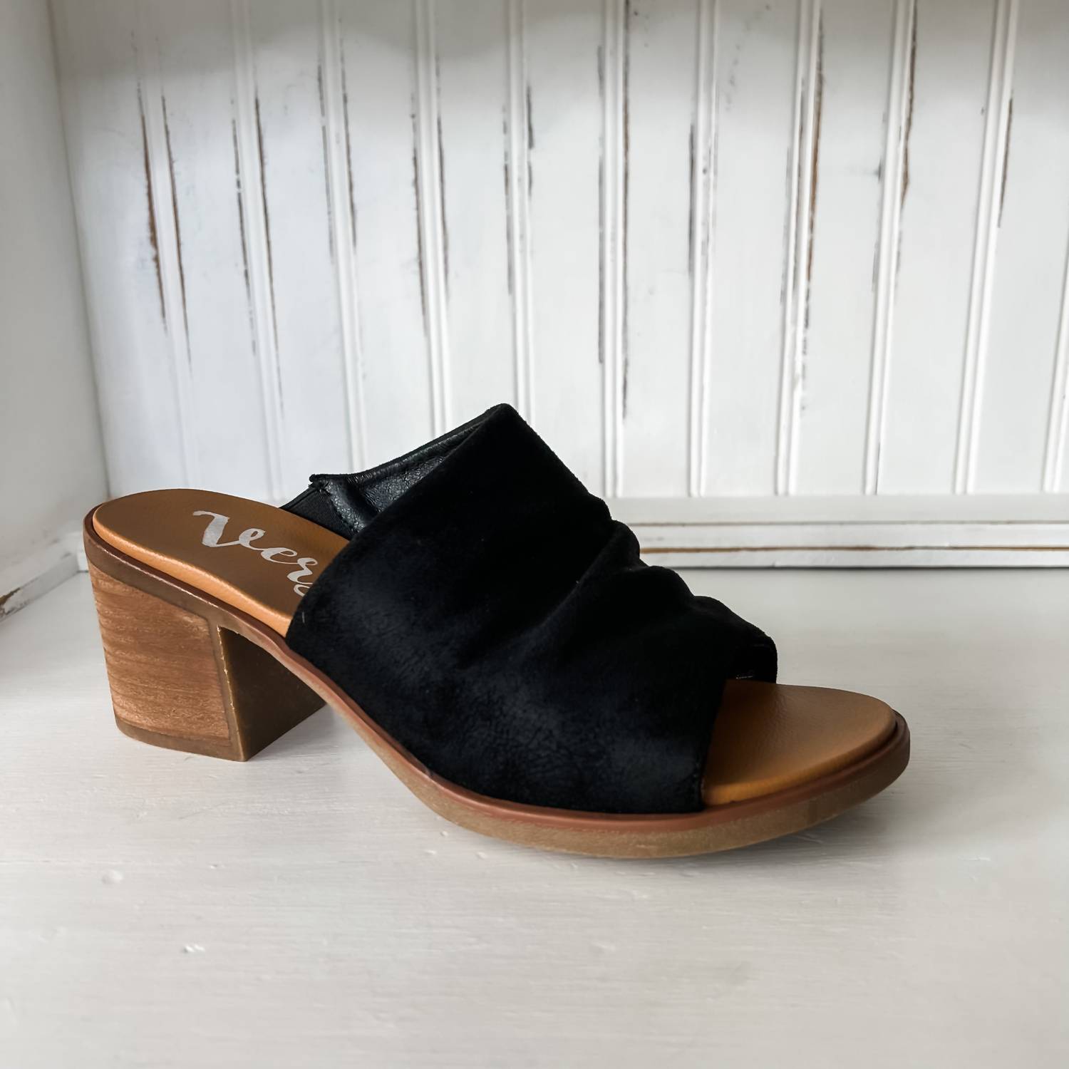 This sandal will take you from brunch to dinner and everything in between. Introducing the Very G Women's Savannah Sandal in elegant black, designed to seamlessly combine comfort and style. This slip-on sandal features a sturdy block heel and a relaxed upper strap with an elastic gore, providing a secure fit. Crafted from man-made materials, it includes a padded footbed ensuring all-day comfort. Perfectly true to size, this sandal is a chic addition to any wardrobe.