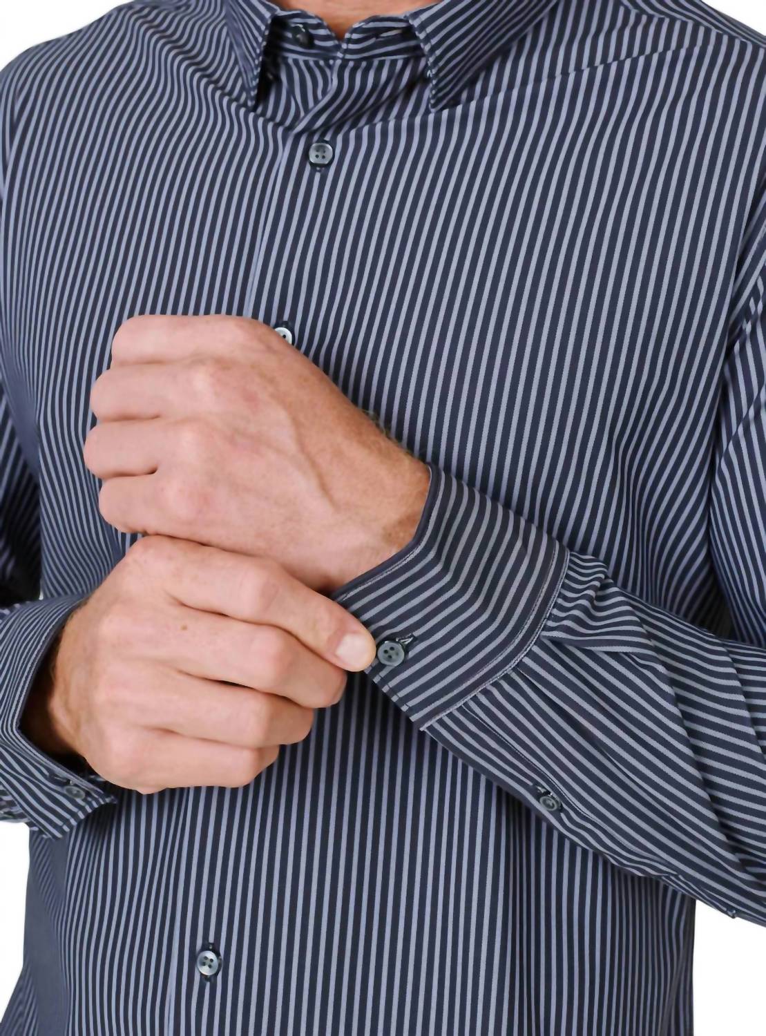 Introducing the Blaine Long Sleeve Shirt by 7Diamonds, an exemplary blend of comfort and style in classic black. This men's casual button-down shirt features long sleeves, a collar neckline, and a button closure, perfect for transitioning effortlessly from day to night. Crafted from durable polyester, it offers 4-way stretch, moisture-wicking properties, and wrinkle resistance to keep you looking sharp and feeling fresh. Easy to care for, simply machine wash and enjoy the performance shirt you won't want to take off.