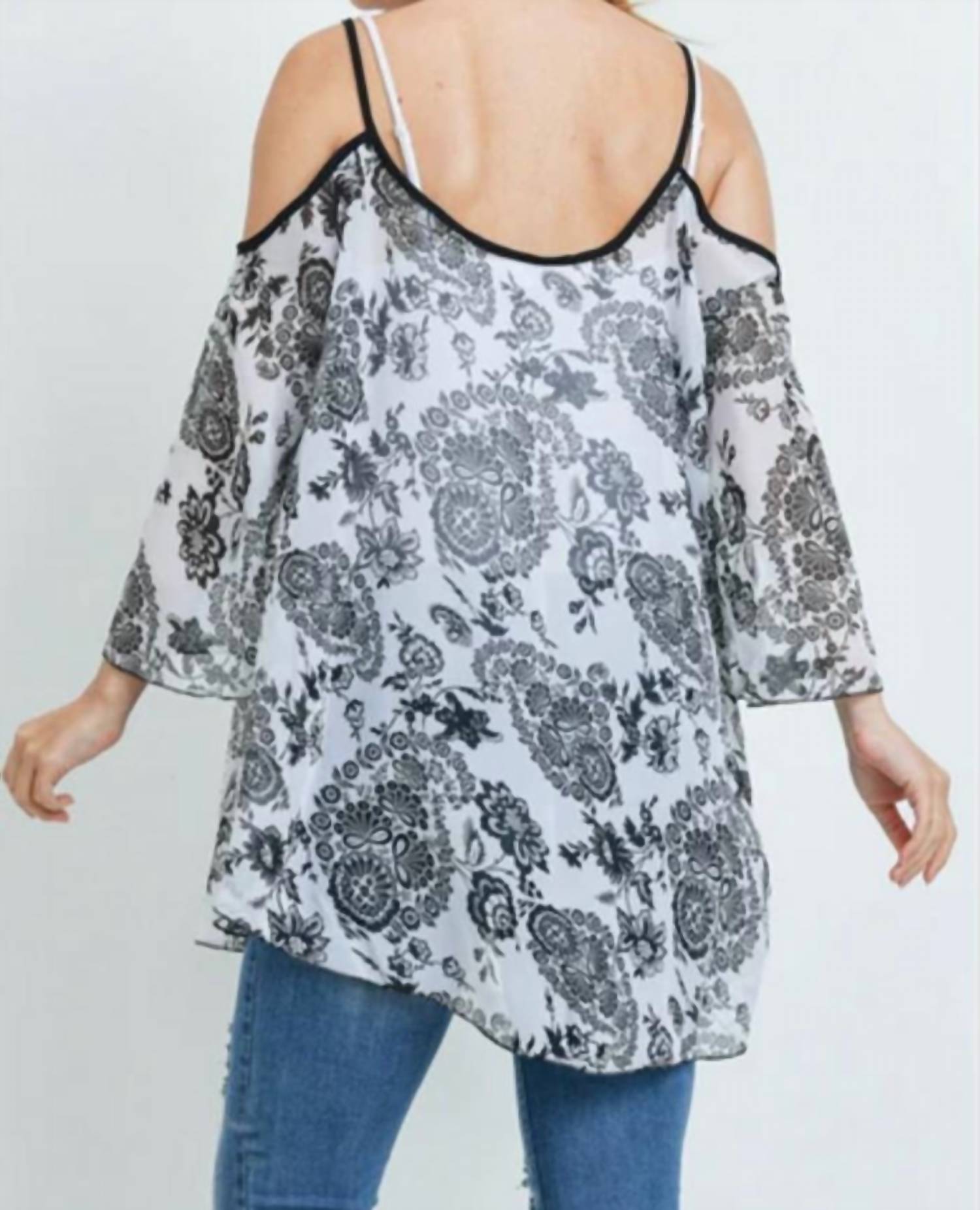 A versatile blouse that works from desk to dinner! Elevate your vacation wardrobe with the Bijorca Camisole Top, featuring a chic floral pattern in classic black. This three-quarter sleeve blouse is crafted from 100% polyester, offering lightweight and breathable comfort. Designed with a modern scoopneck and a versatile pull-on closure, it ensures effortless style. Suggested fit is FREE SIZE, accommodating L to XL - 1X.