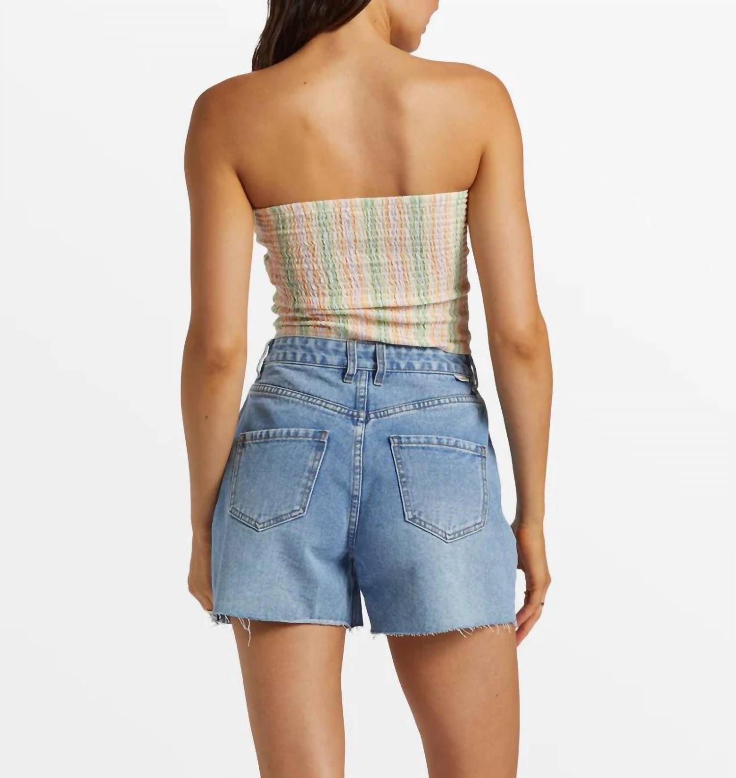 Jean shorts so versatile, you can literally wear them with anything. Introducing Riley Cut-off Denim Shorts by Billabong, a timeless summer staple with a vintage flair in the Faded Indigo Fray colorway. These women's jean shorts feature a high-waisted, mid-thigh length cut, crafted from 100% cotton denim for a textured look. Designed for comfort with a regular fit and button closure detailing. Enjoy the laid-back style perfect for beach days or any casual occasion.