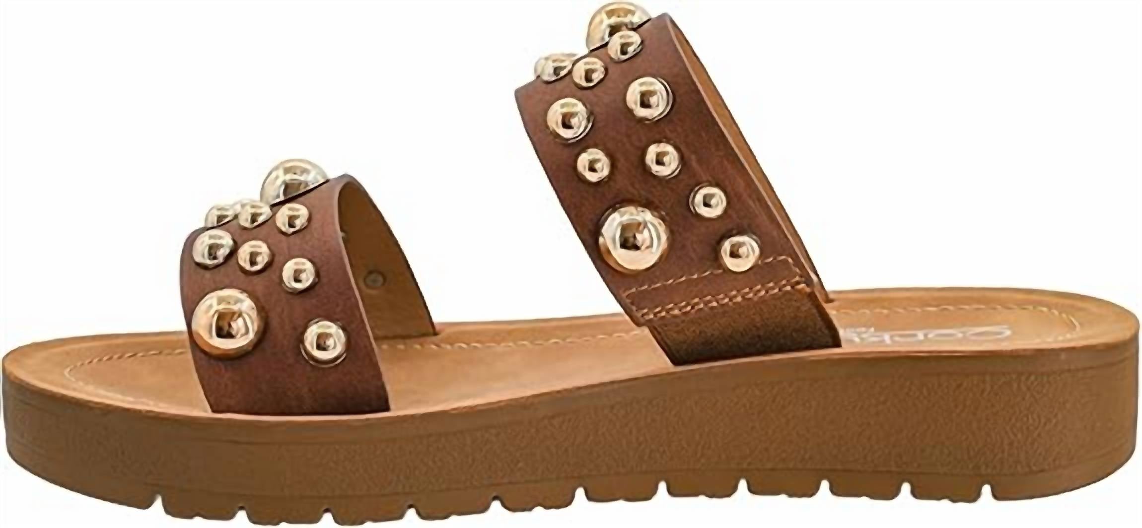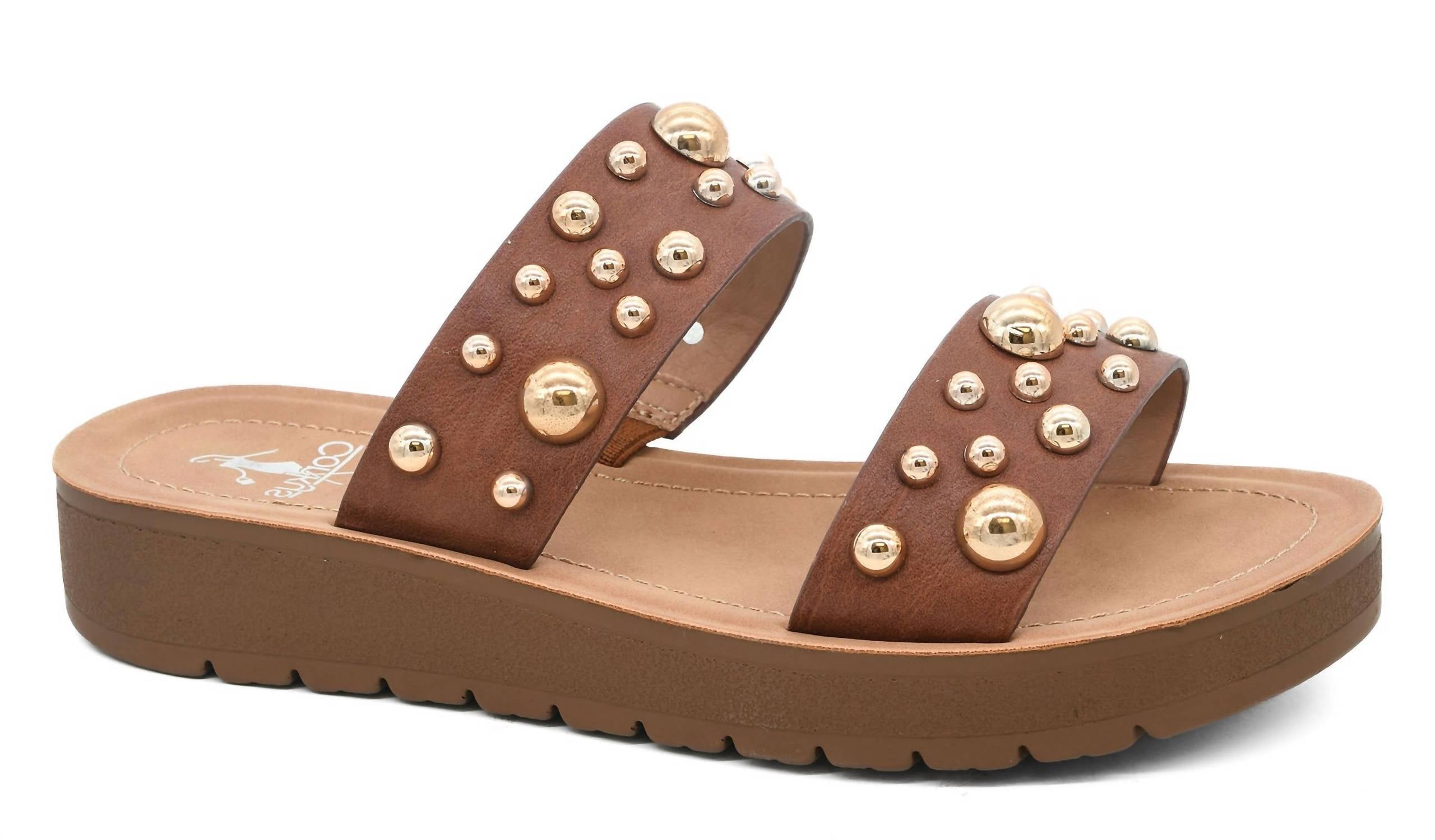 Classicly cute and all-day-wearable. We love this sandal. Step into summer with the Women's Bad Romance Sandal by Corkys Footwear, designed to effortlessly elevate your vacation style. In a chic cognac shade, these sandals feature a comfortable wedge heel with a height of 0.75 inches and a round toe shape, making them perfect for Easter outings. Their easy slide-on design transitions seamlessly from beach adventures to city streets, fitting perfectly into the maximalist trend. Make a statement wherever your summer takes you with these must-have sandals.
