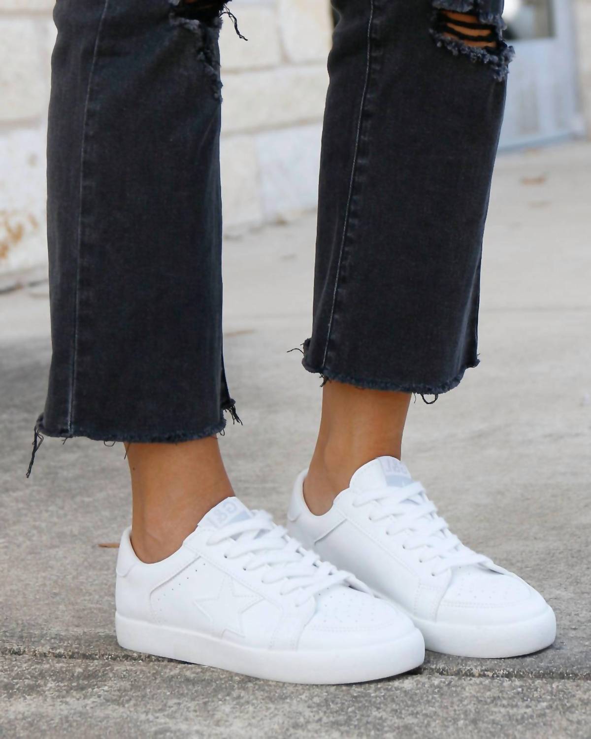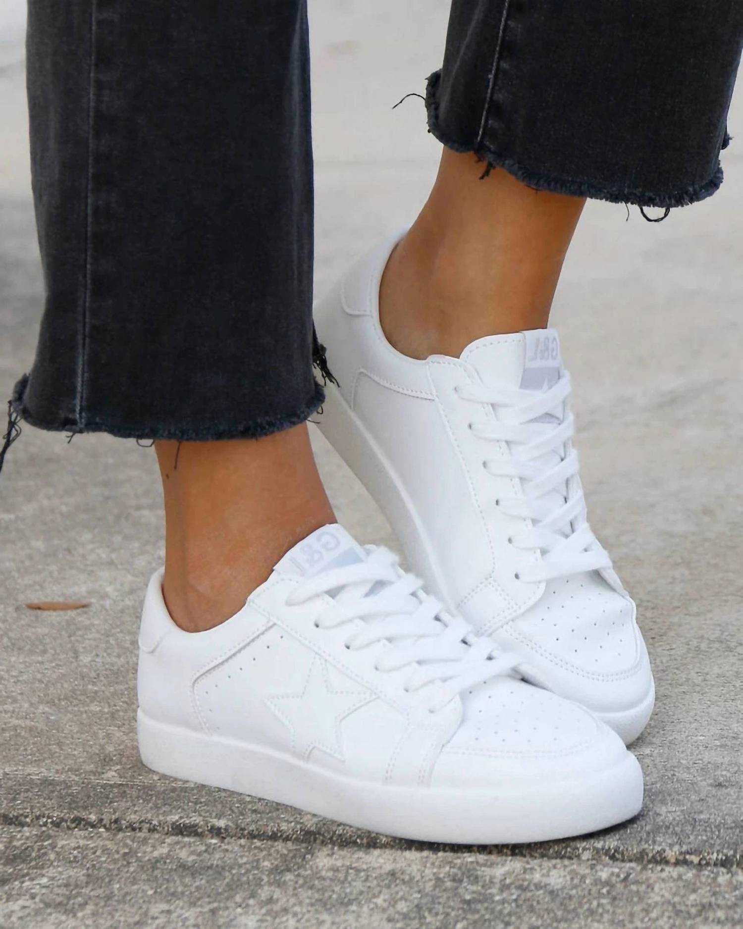 Cute, functional, and comfortable. These sneakers check all the boxes. Step into style with the Women's Star Sneaker by Grace and Lace, featuring a chic and timeless white-on-white design. Crafted from high-quality vegan Polyurethane, these sneakers are both sustainable and fashionable. Enjoy personalized comfort with a padded, removable footbed, perfect for all-day wear. Designed with a round toe and flat heel, these sneakers are ideal for the spring season.