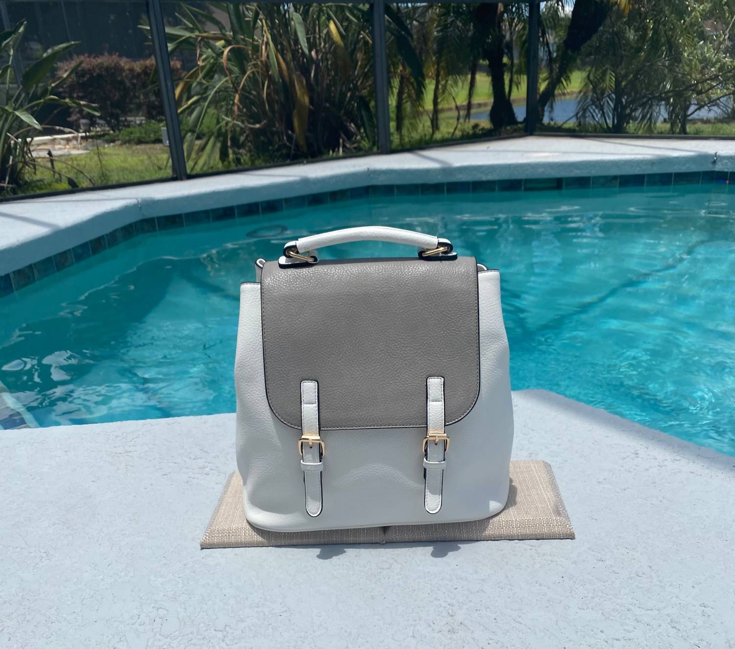 The perfect size backpack that fits everything you need! Discover the Women's Brooks Vegan Backpack by Jen & Co., an essential companion for any occasion with its stylish White/Grey design. With dimensions of 13" x 12" x 6.5", this versatile accessory offers the convenience of convertible wear, functioning as a handbag, shoulder bag, or a backpack. Stay organized and secure with multiple pockets perfect for your everyday essentials. Ideal for work, travel, or a leisurely day out.