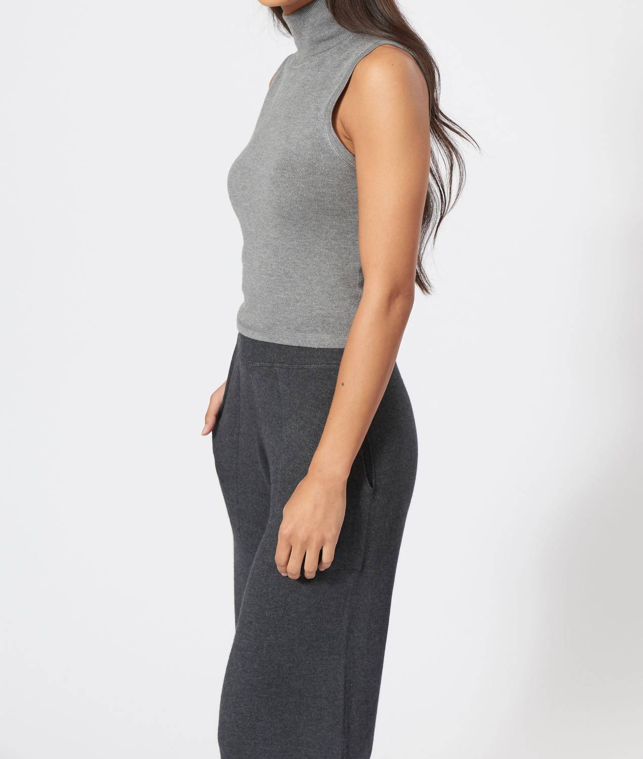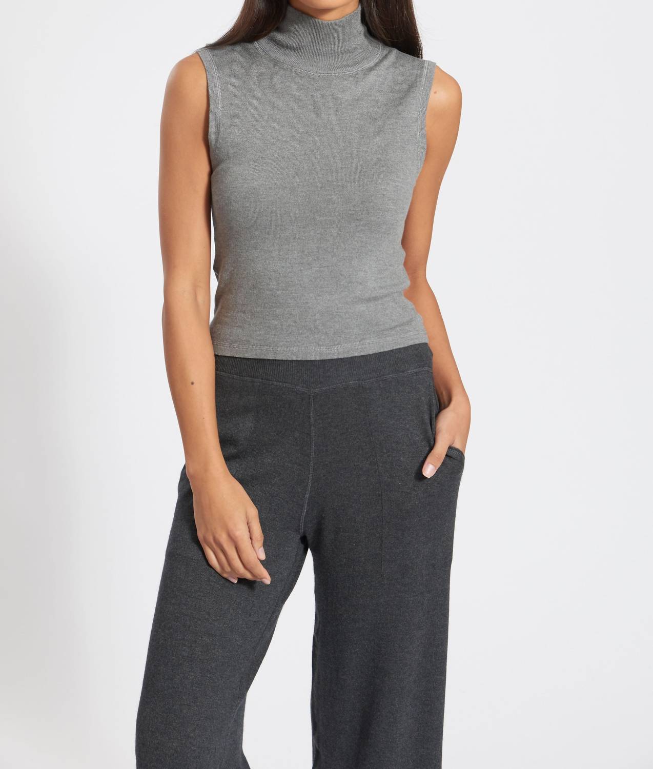 A timeless blouse that will never go out of style. Discover the Monterey Mock by LEIMERE, the ideal sleeveless blouse for versatile wear in an elegant grey. Exquisitely crafted from 50% Modal, 25% Viscose, 15% Nylon, and 10% Cashmere, it features a modern mockneck design with cover stitch seams, perfect for both lounging and dinner parties. Enjoy a pull-on closure and experience comfort with its soft, luxurious fabric. Imported and designed for easy care, simply hand wash and lay flat to dry, ensuring your garment remains a staple piece through every season. Model is wearing a size small (5'10" height, 27" chest, 20" length).