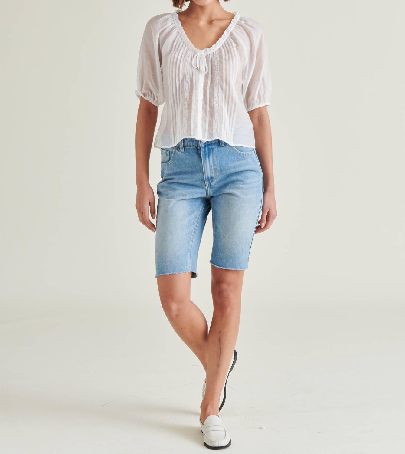 A versatile blouse that works from desk to dinner! Presenting the Lana Scoopneck Top by Steve Madden, a charming choice in an antique hue, perfect for your spring workwear wardrobe. This blouse features short puff sleeves and a delicate lace texture, accentuated with crisp pintucks for added charm. Made from a sustainable blend of 85% Tencel® lyocell and 15% nylon, it offers an eco-friendly fashion statement. The top is completed with a subtle scoop neck featuring ties, and is a pull-on style for convenience. Care instructions recommend hand wash and laying flat to dry, ensuring your blouse stays fresh for any vacation or Easter occasion.