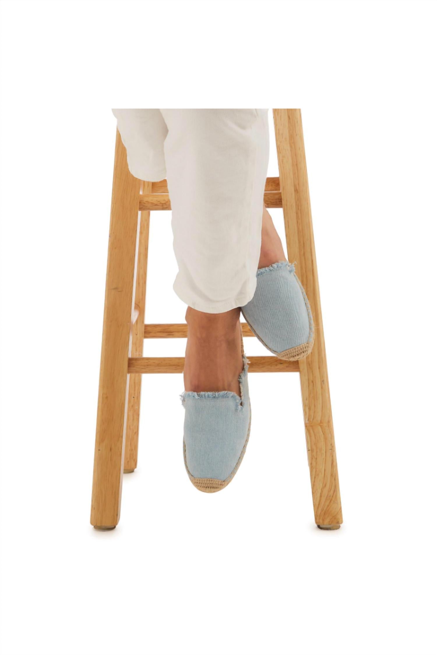 Classicly cute and all-day-wearable. We love this sandal. Introducing the Denim Espadrille Slides by TWO'S COMPANY, a stylish addition to your casual wardrobe in a versatile blue. These women's slides feature a slip-on design with a cotton denim upper and a durable rubber sole, perfect for everyday wear. Featuring a round toe and flat heel, these sandals are easy to pair with any outfit. Available in three sizes to ensure a perfect fit.