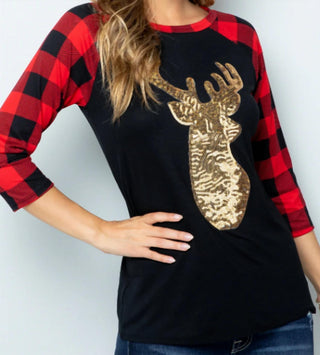 Acting Pro - Contrast Long Sleeve Deer Patch Top