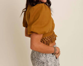 Endless Blu. - Monte Carlo Puff Sleeve Fringe Top