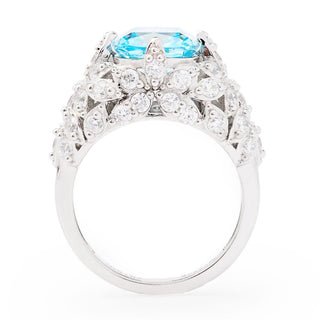 Brilliante Platinum Plated 4.32 DEW Simulated Aquamarine & Diamond Ring