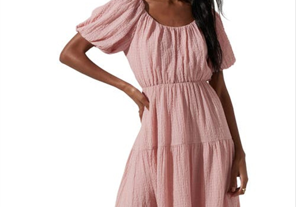 Delicate pink color | Tiered short sleeves | Size large | Available at Nordstrom | From Astr The Label | Elegant design | Soft| comfortable material | Easy to dress up or down | Versatile styling options | High-quality fabric