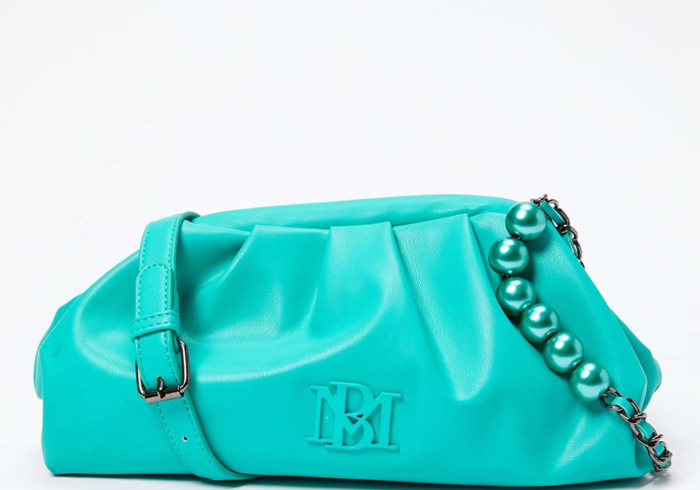 Green Beaded Crossbody Bag| A trendy crossbody bag with a long beaded strap and snap closure|12'' W x 8'' H x 4'' D23'' strap dropLinedPolyester / polyurethaneSnap closureInterior; one zip and one slip pocketImported