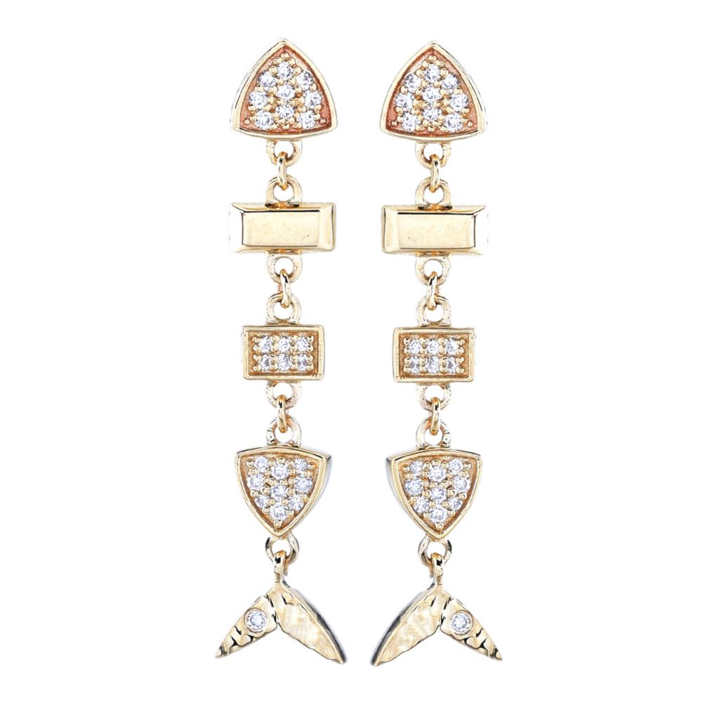 Beverly Hills Elegance 14K Gold 0.16ctw Diamond Fish Drop Earrings