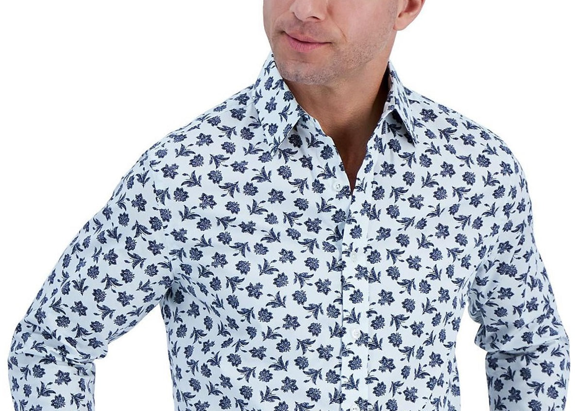 Club Room Men's Cotton Printed Button Down Shirt Blue Size Small