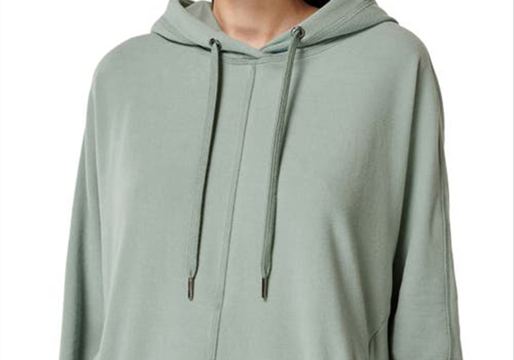 Soft| high-quality fleece material | Stylish green mist color | Comfort-focused size X-Large | Adjustable hoodie | Rib-knit cuffs and hem | Cozy kangaroo pocket | Brand logo accent | High neckline feature | Easy pullover style | Luxurious Sweaty Betty craftsmanship