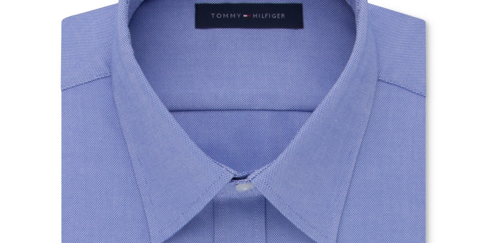 Tommy Hilfiger Men's Patterned Collared Classic Fit Stretch Dress Shirt Blue Size 15.5X32-33