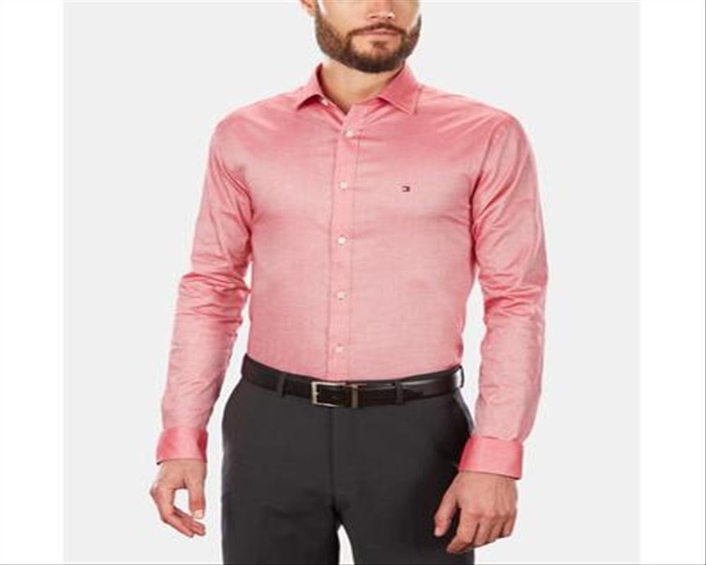 Tommy Hilfiger Men's Slim Fit Stretch Solid Dress Shirt Red Size 15.5X32-33