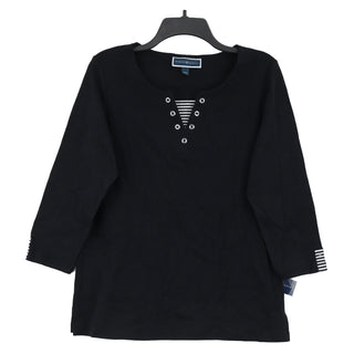 Karen Scott Women's Neck Inset Cotton Grommet Top Black Size Medium