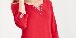 Karen Scott Women's Striped Split Neck Grommet Trim Top Red Size Large
