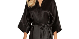 Linea Donatella Women's Short Satin Wrap Robe Lingerie Black Size X-Large