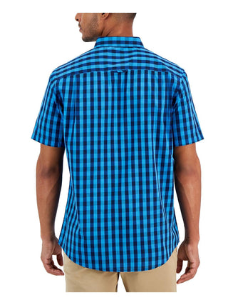 Club Room Men's Short Sleeve Plaid Shirt Blue Size XXX-Large