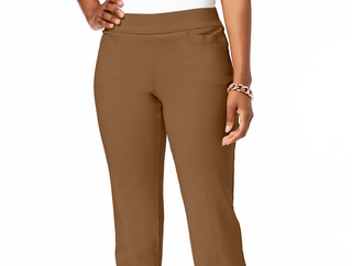 JM Collection Women's Pull-On Tummy Control Slim-Leg Pants Brown Size Large