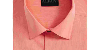 Alfani Men's Coral Pinstripe Collared Classic Fit Dress Shirt Orange Size 16.5x34-35