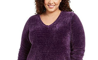 Karen Scott Women's Plus Size V-Neck Chenille Sweater Purple Size Extra Large