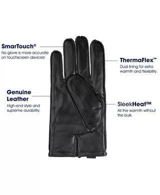 Isotoner Signature Men's Faux Leather Sleekheat Gloves Black Size Large