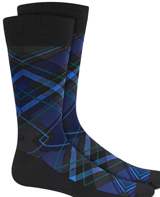 Perry Ellis Men's Microfiber Plaid Socks Black Size Regular