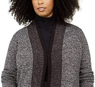 Karen Scott Women's Plus Tipped Cardigan Sweater Black Size 2X