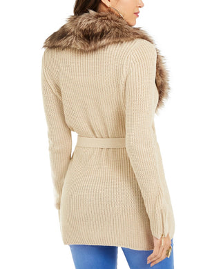 Thalia Sodi Women's Faux-Fur Trim Ribbed Cardigan Gold Size Medium