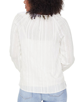 NYDJ Women's Hayward Stripe Regular Peasant Blouse -White Size Medium