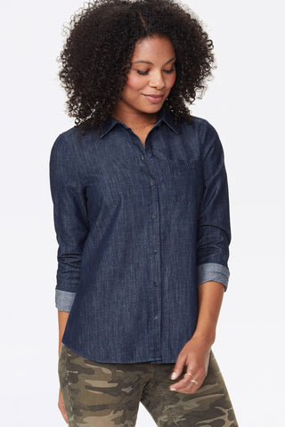 NYDJ Women's Chambray a Line City Shirt Blue Size M