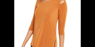 Alfani Women's Asymmetrical Cut Out Top -Brown Size Petite L