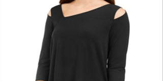Alfani Women's Asymmetrical Cut Out Top Black  Size Petite S