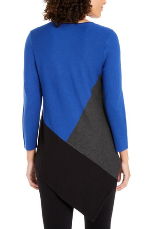 Alfani Women's Asymmetrical Colorblocked Sweater Blue Size X-Large