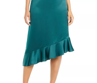 Alfani Women's Asymmetrical Ruffle Hem Skirt Green Size 16