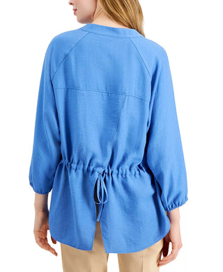 Alfani Women's Bishop-Sleeve Tie-Back Top Blue Size Small