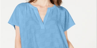 Alfani Women's Blouse Textured Split V Neck Blue Size Medium