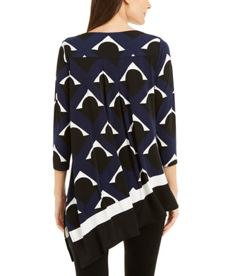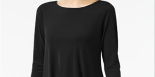 Alfani Women's Blouse Deep 3/4 Sleeve Jersey Top Black Size Small