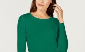 Alfani Women's Blouse Small Knit Long-Sleeve Ruched Green Size Small