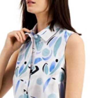 Alfani Women's Blouse ButtonDown Printed Knit Top Blue Size Petite XL